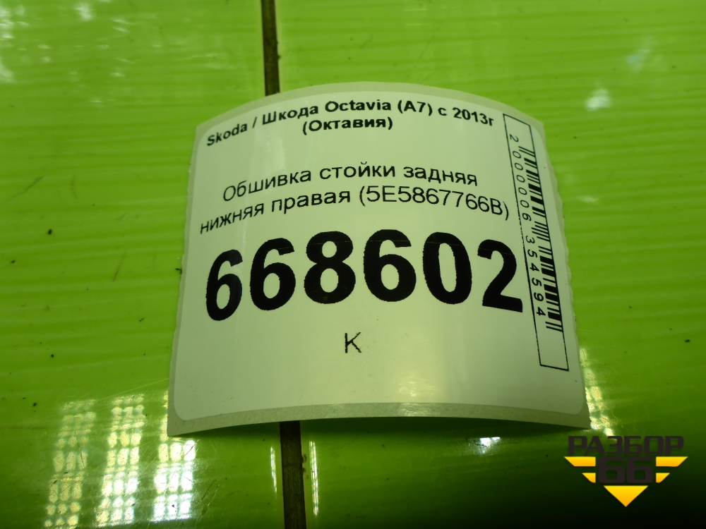 Обшивка стойки задняя нижняя правая (лифтбек) (5E5867766B) для Skoda Octavia (A7) с 2013г (Октавия) в Екатеринбурге