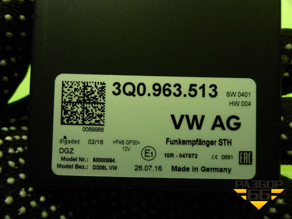 Блок электронный (управления Webasto) (3Q0963513) для Skoda Octavia (A7) с 2013г (Октавия) в Екатеринбурге