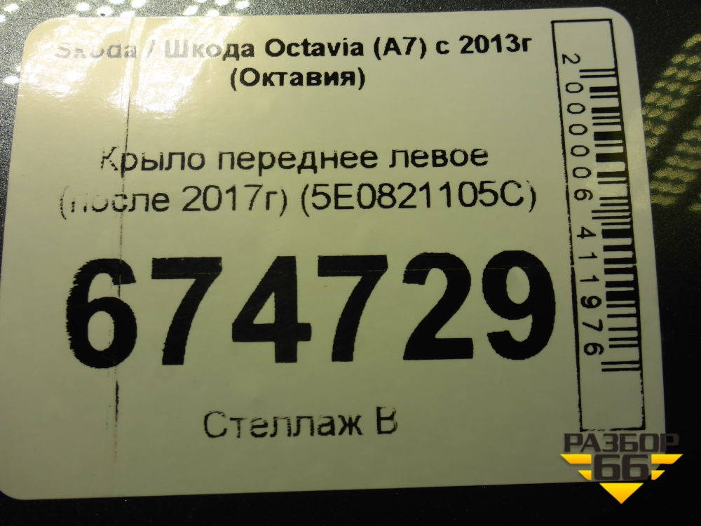 Крыло переднее левое (после 2017г) (5E0821105C) для Skoda Octavia (A7) с 2013г (Октавия) в Екатеринбурге