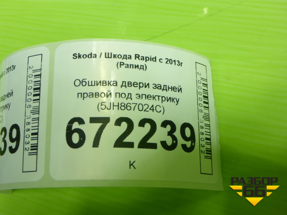 Обшивка двери задней правой под электрику (5JH867024C) для Skoda Rapid с 2013г (Рапид) в Екатеринбурге