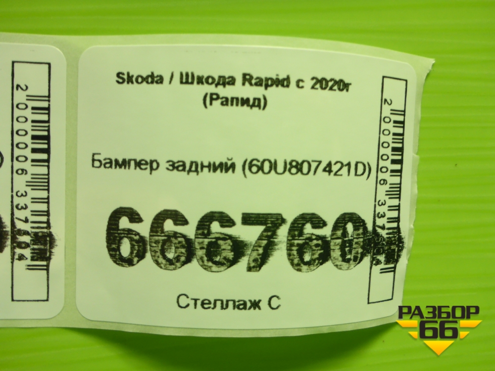 Бампер задний (60U807421D) для Skoda Rapid с 2020г (Рапид) в Екатеринбурге