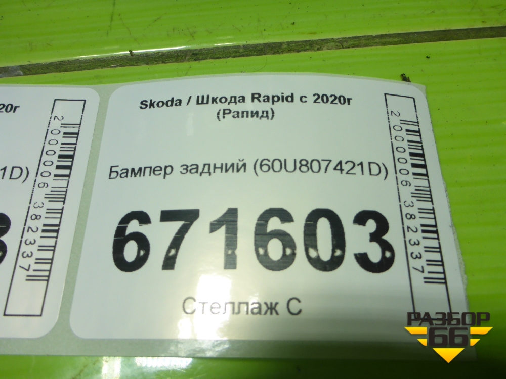 Бампер задний (60U807421D) для Skoda Rapid с 2020г (Рапид) в Екатеринбурге