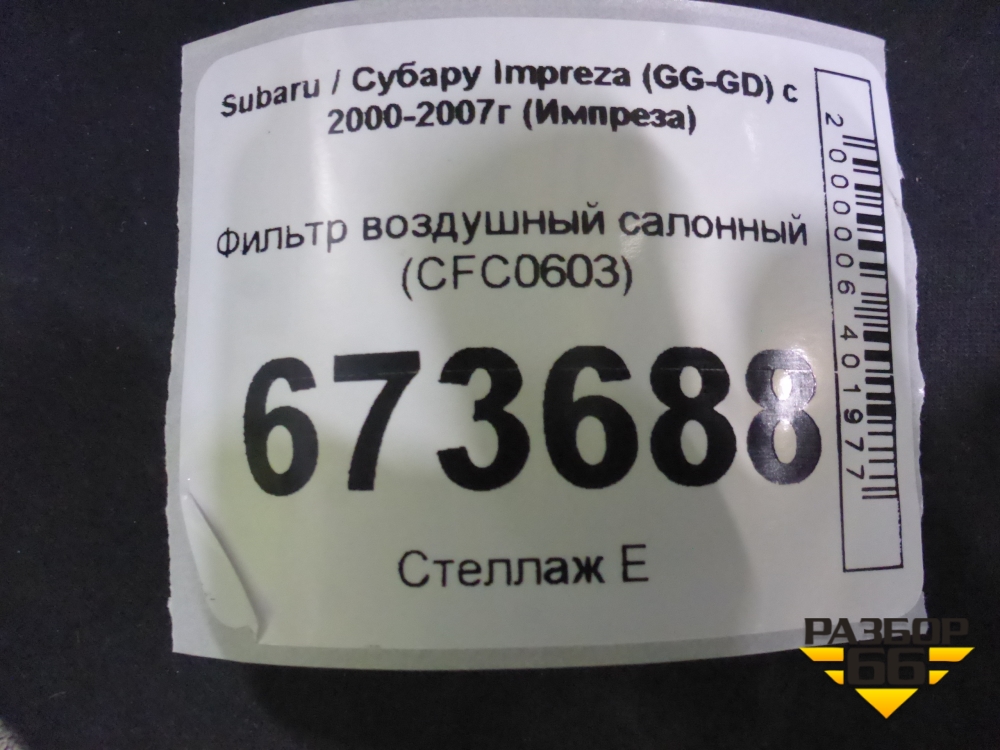Фильтр воздушный салонный (CFC0603) для Subaru Impreza (GG-GD) с 2000-2007г (Импреза) в Екатеринбурге