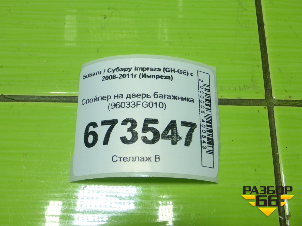 Спойлер на дверь багажника (96033FG010) для Subaru Impreza (GH-GE) с 2008-2011г (Импреза) в Екатеринбурге