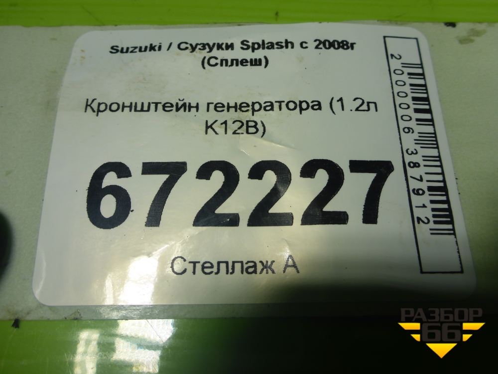 Кронштейн генератора (1.2л K12B) для Suzuki Splash с 2008г (Сплеш) в Екатеринбурге