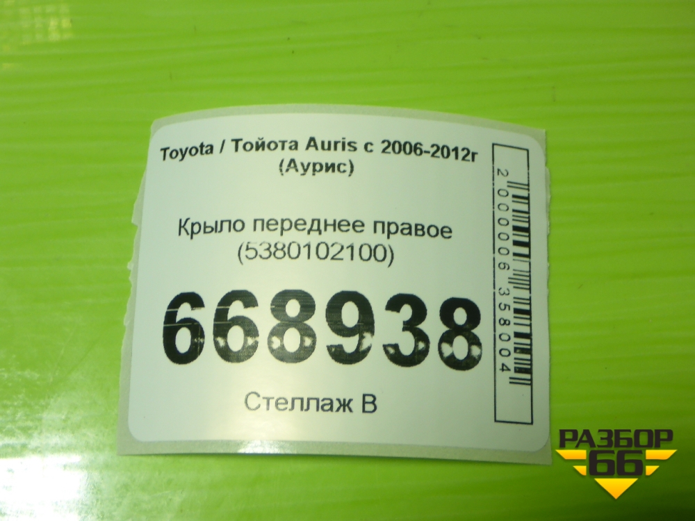 Крыло переднее правое (5380102100) для Toyota Auris с 2006-2012г (Аурис) в Екатеринбурге