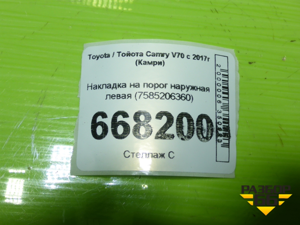 Накладка на порог наружная левая (7585206360) для Toyota Camry V70 с 2017г (Камри) в Екатеринбурге