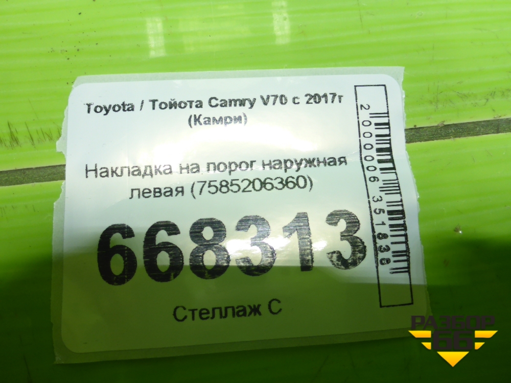 Накладка на порог наружная левая (7585206360) для Toyota Camry V70 с 2017г (Камри) в Екатеринбурге
