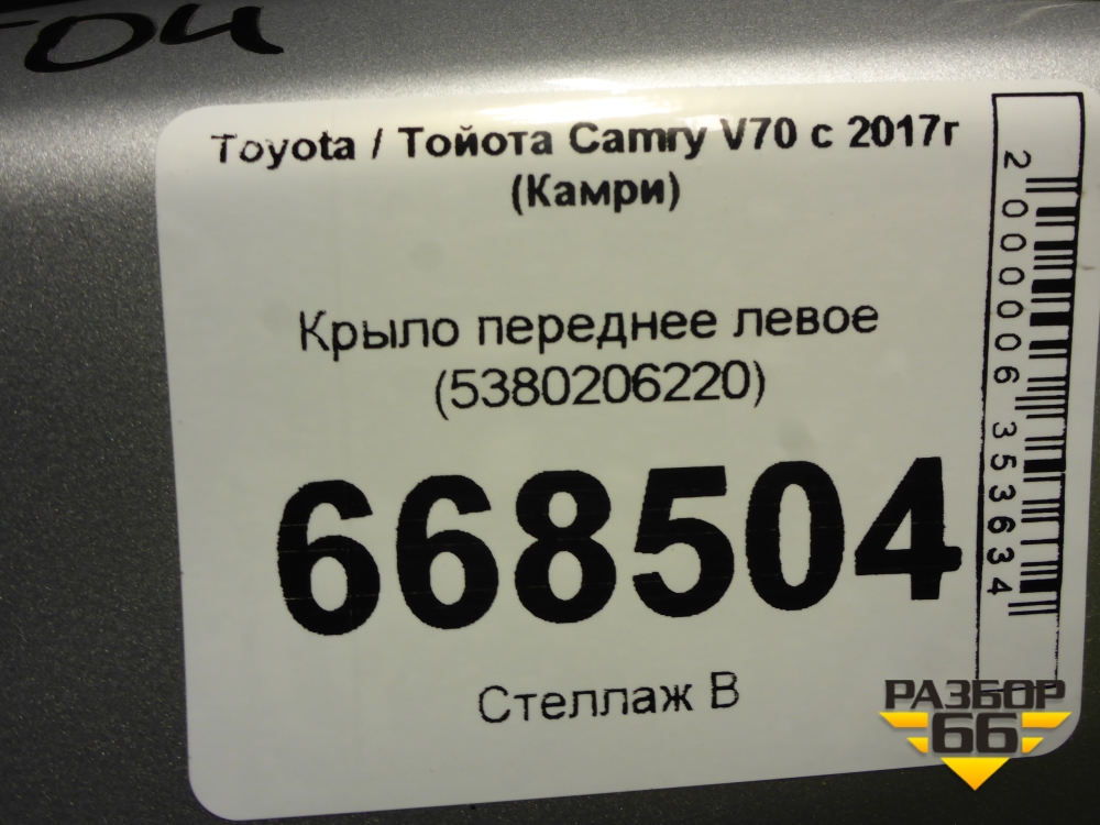 Крыло переднее левое (5380206220) для Toyota Camry V70 с 2017г (Камри) в Екатеринбурге