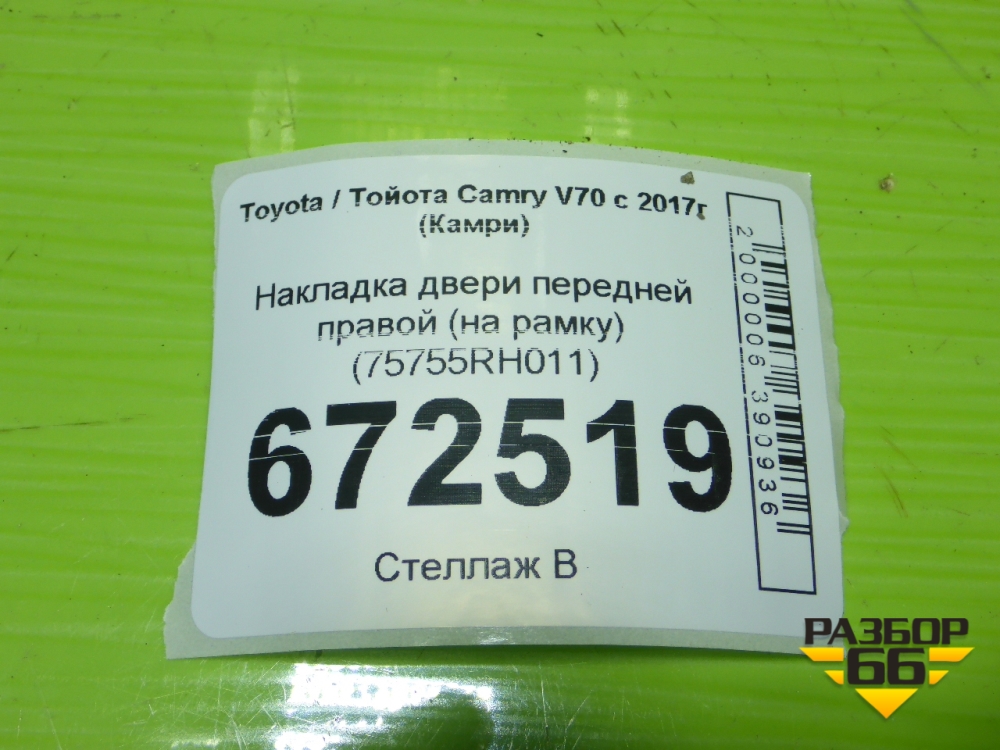 Накладка двери передней правой (на рамку) (75755RH011) для Toyota Camry V70 с 2017г (Камри) в Екатеринбурге