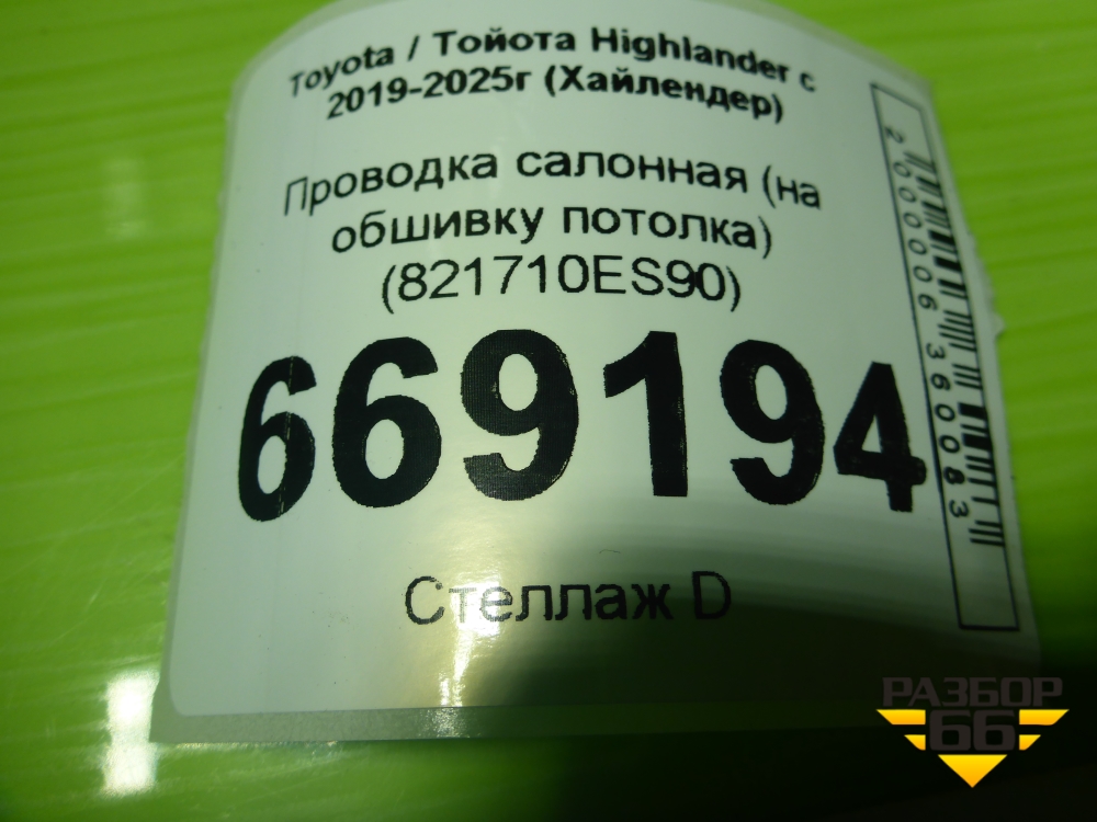 Проводка салонная (на обшивку потолка) (821710ES90) для Toyota Highlander с 2019-2025г (Хайлендер) в Екатеринбурге