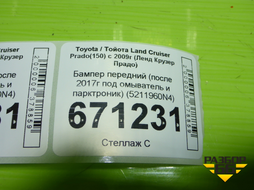 Бампер передний (после 2017г под омыватель и парктроник) (5211960N4) для Toyota Land Cruiser Prado(150) с 2009г (Ленд Крузер Прадо) в Екатеринбурге