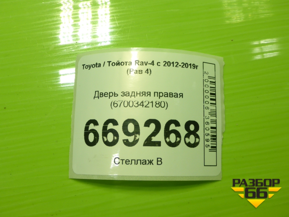 Дверь задняя правая (6700342180) для Toyota Rav-4 с 2012-2019г (Рав 4) в Екатеринбурге