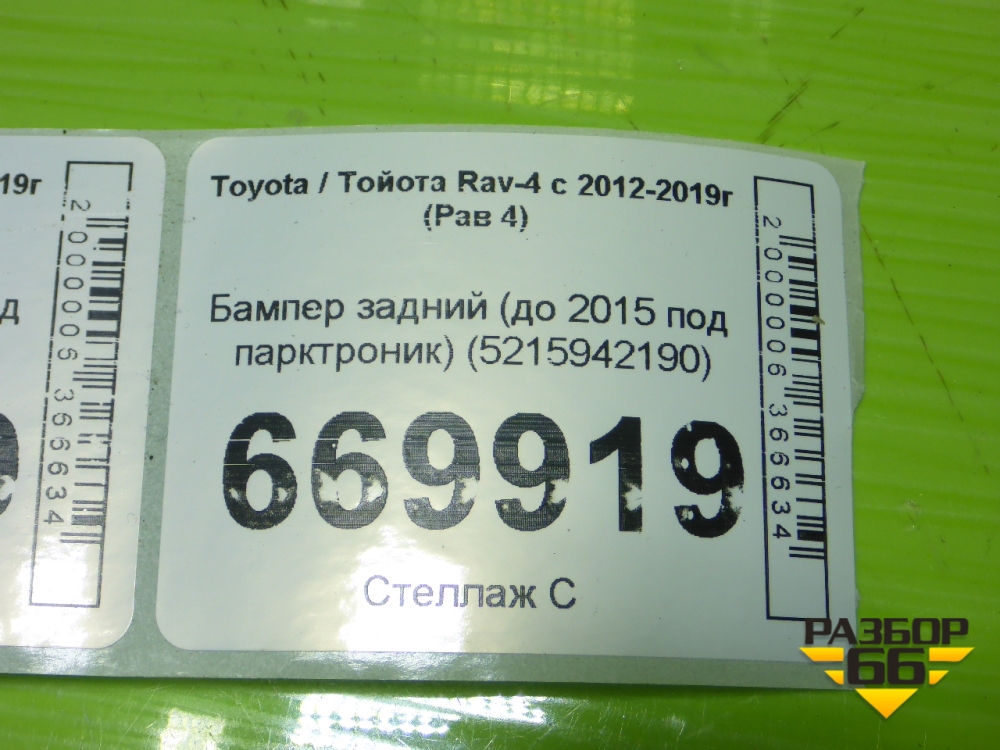 Бампер задний (до 2015 под парктроник) (5215942190) для Toyota Rav-4 с 2012-2019г (Рав 4) в Екатеринбурге