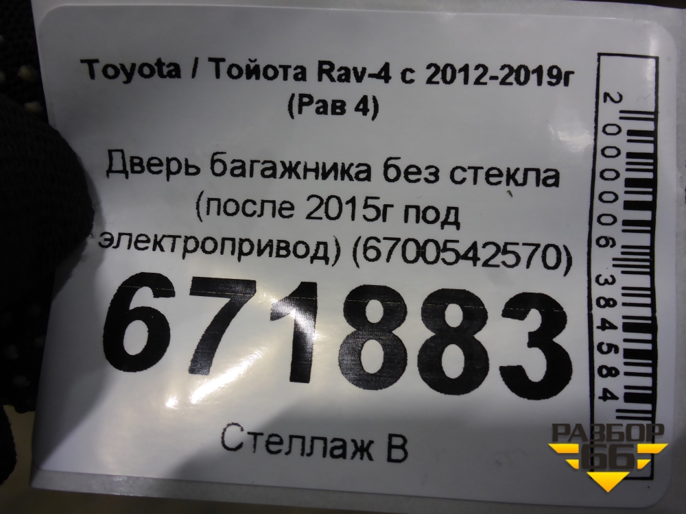 Дверь багажника без стекла (после 2015г под электропривод) (6700542570) для Toyota Rav-4 с 2012-2019г (Рав 4) в Екатеринбурге