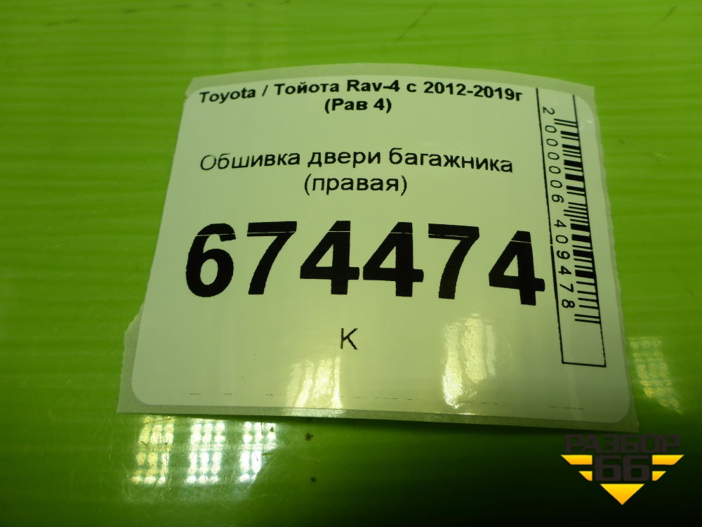 Обшивка двери багажника (правая) (6793742050) для Toyota Rav-4 с 2012-2019г (Рав 4) в Екатеринбурге