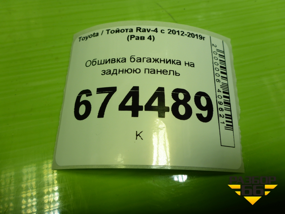 Обшивка багажника на заднюю панель (6471642020) для Toyota Rav-4 с 2012-2019г (Рав 4) в Екатеринбурге