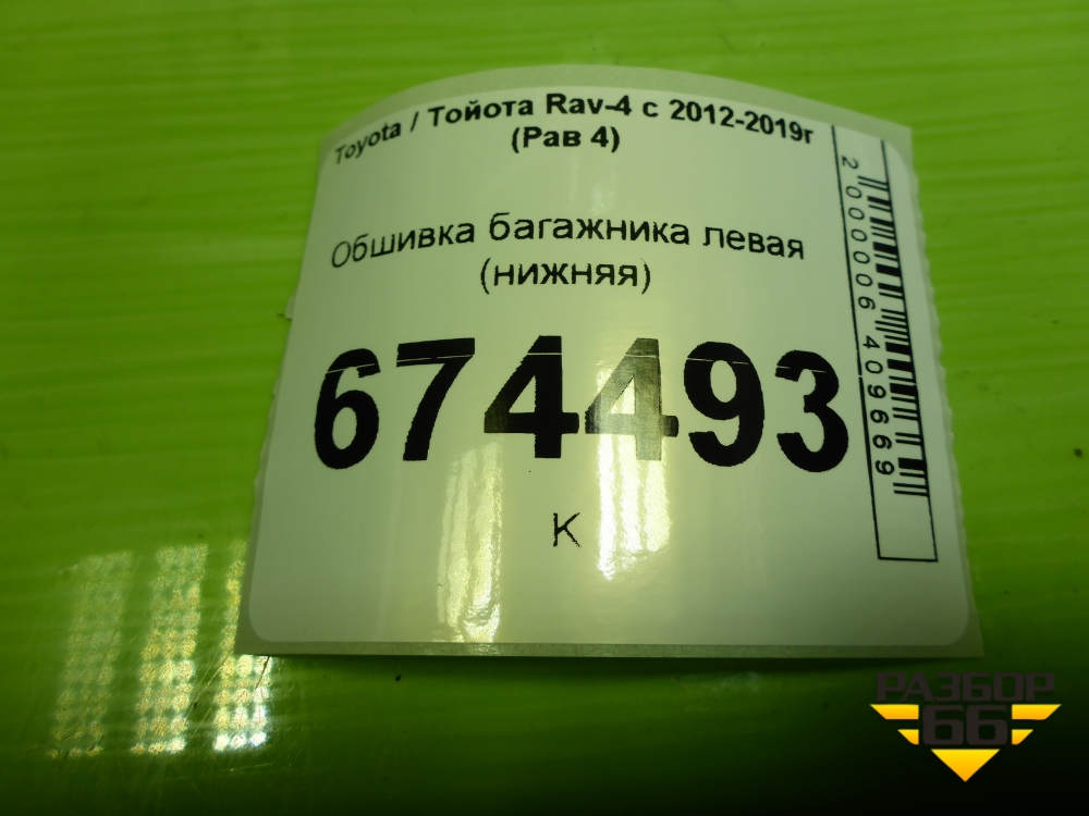 Обшивка багажника левая (нижняя) (6474042072) для Toyota Rav-4 с 2012-2019г (Рав 4) в Екатеринбурге