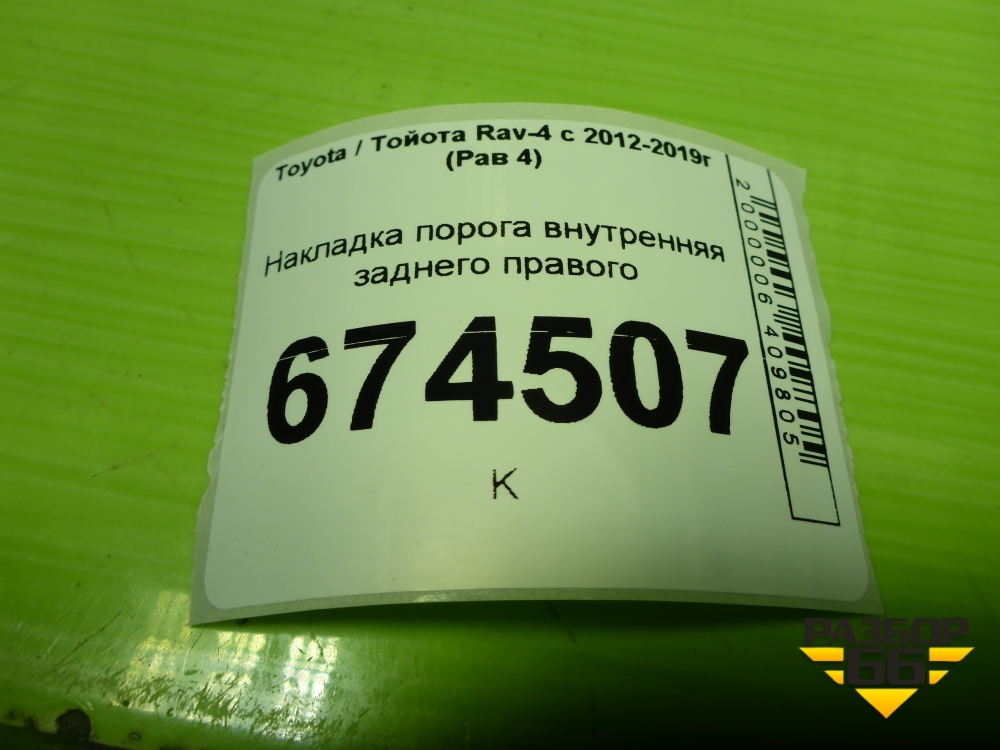 Накладка порога внутренняя заднего правого (6791742070) для Toyota Rav-4 с 2012-2019г (Рав 4) в Екатеринбурге