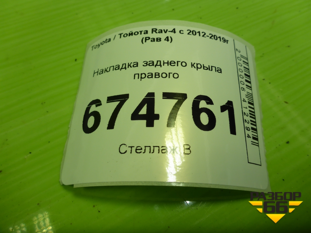 Накладка заднего крыла правого (до 2015г) (7560542190) для Toyota Rav-4 с 2012-2019г (Рав 4) в Екатеринбурге