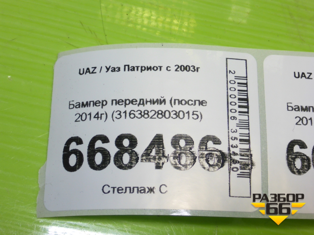 Бампер передний (после 2014г) (316382803015) для UAZ Патриот с 2003г в Екатеринбурге