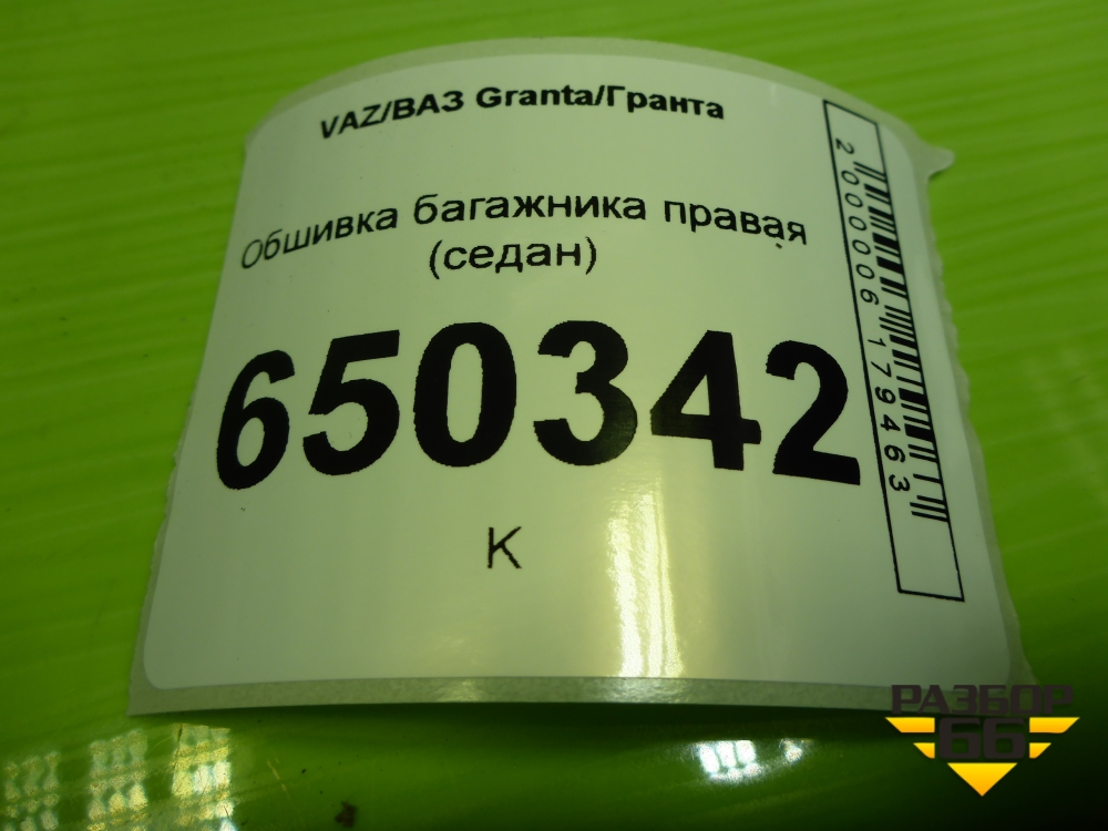 Обшивка багажника правая (седан) (8450001698) для VAZ Granta/Гранта в Екатеринбурге