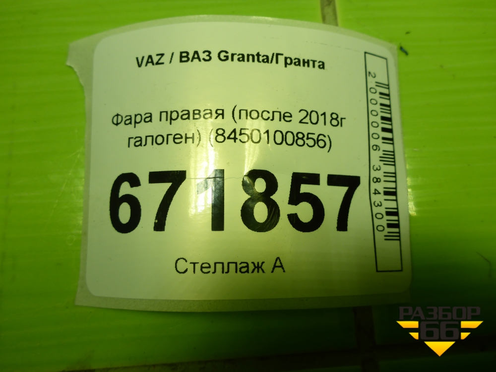 Фара правая (после 2018г галоген) (8450100856) для VAZ Granta/Гранта в Екатеринбурге