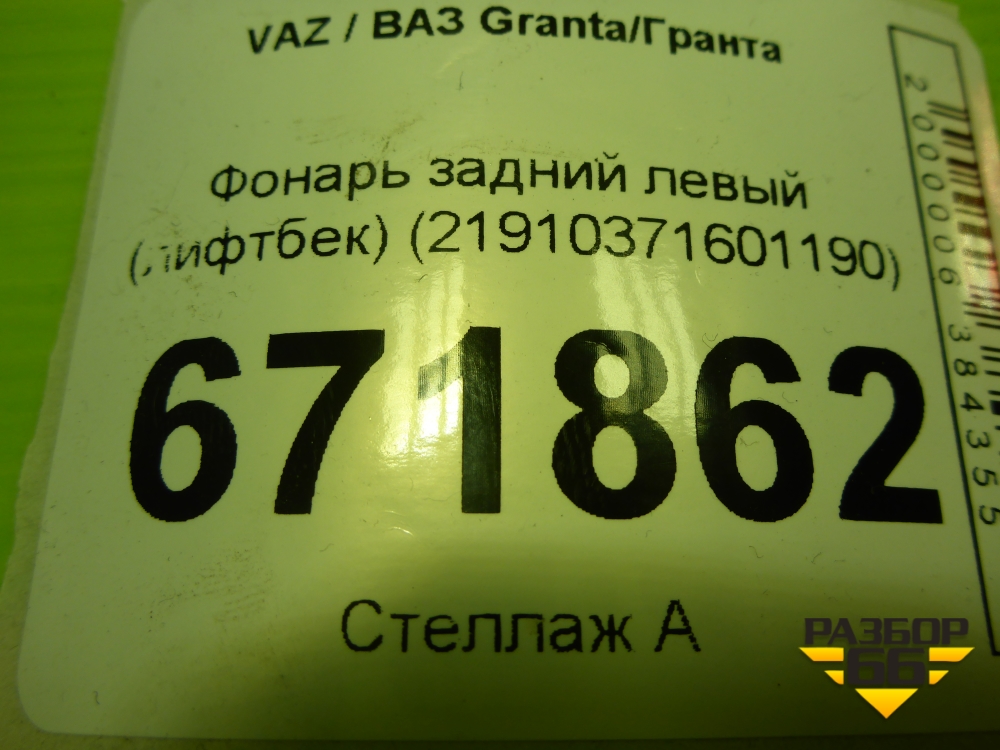 Фонарь задний левый (лифтбек) (21910371601190) для VAZ Granta/Гранта в Екатеринбурге