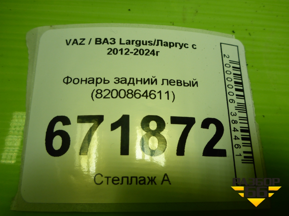 Фонарь задний левый (8200864611) для VAZ Largus/Ларгус с 2012-2024г в Екатеринбурге