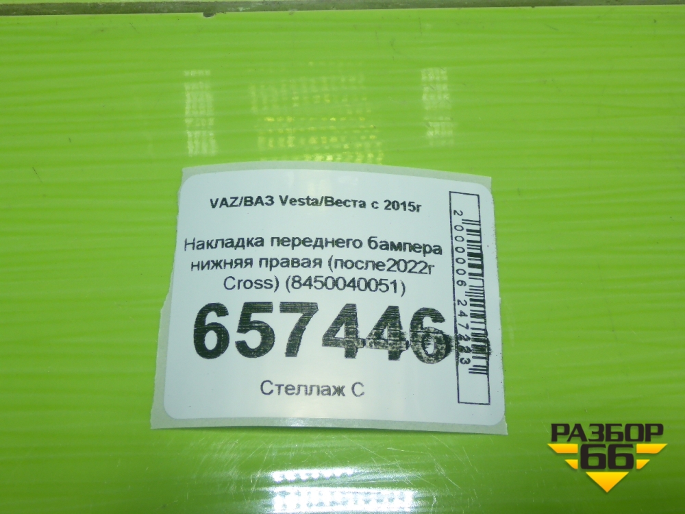 Накладка переднего бампера нижняя левая (после2022г Cross) (8450040051) для VAZ Vesta/Веста с 2015г в Екатеринбурге