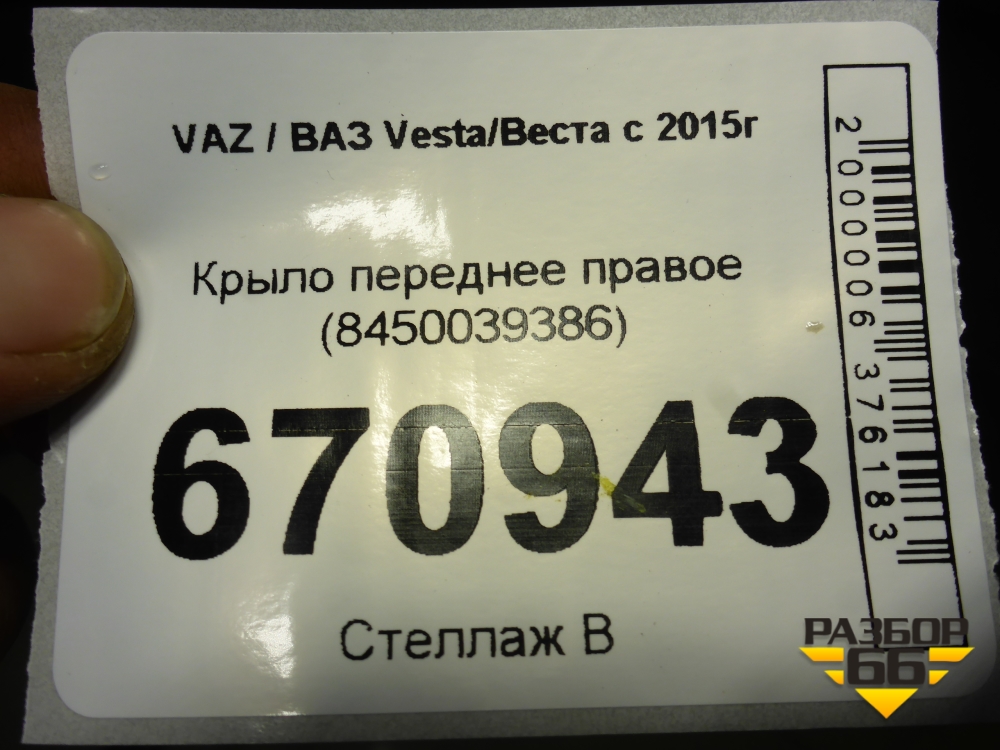 Крыло переднее правое (8450039386) для VAZ Vesta/Веста с 2015г в Екатеринбурге