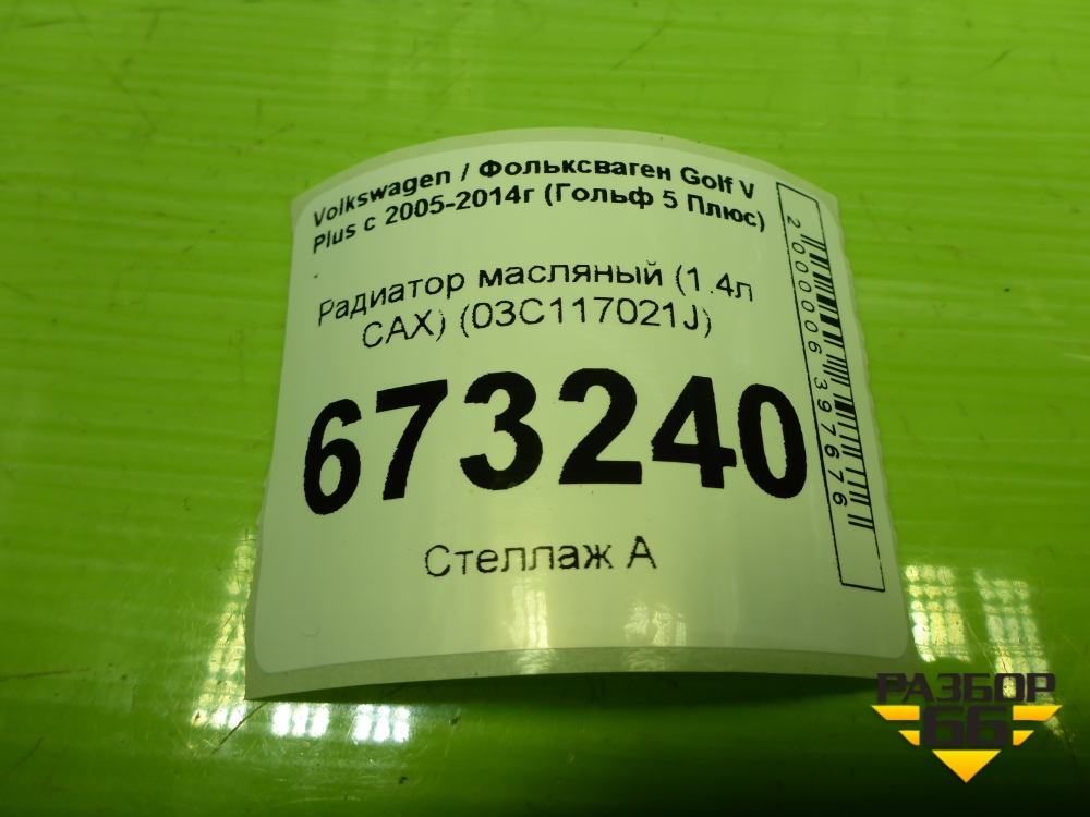 Радиатор масляный (1.4л CAX) (03C117021J) для Volkswagen Golf V Plus с 2005-2014г (Гольф 5 Плюс) в Екатеринбурге