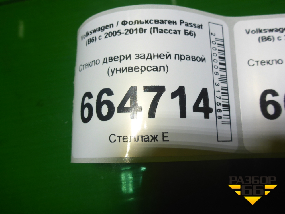 Стекло двери задней правой (универсал) для Volkswagen Passat (B6) с 2005-2010г (Пассат Б6) в Екатеринбурге
