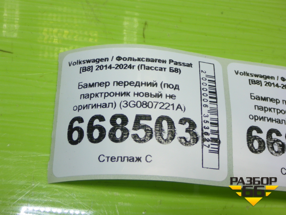 Бампер передний (под парктроник новый не оригинал) (3G0807221A) для Volkswagen Passat [B8] 2014-2024г (Пассат Б8) в Екатеринбурге