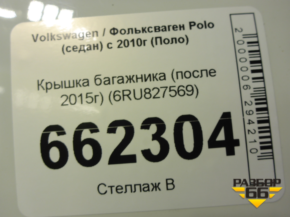 Крышка багажника (после 2015г) (6RU827569) для Volkswagen Polo (седан) с 2010г (Поло) в Екатеринбурге