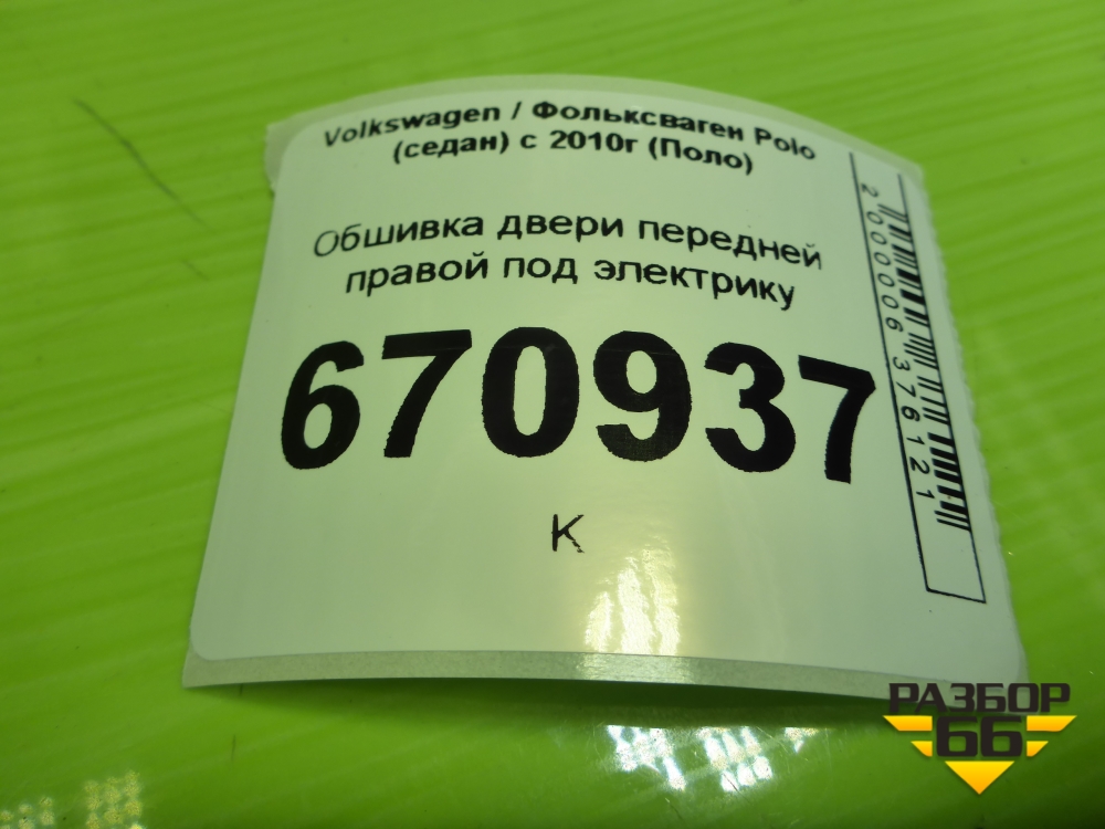 Обшивка двери передней правой под электрику (6RU867012) для Volkswagen Polo (седан) с 2010г (Поло) в Екатеринбурге