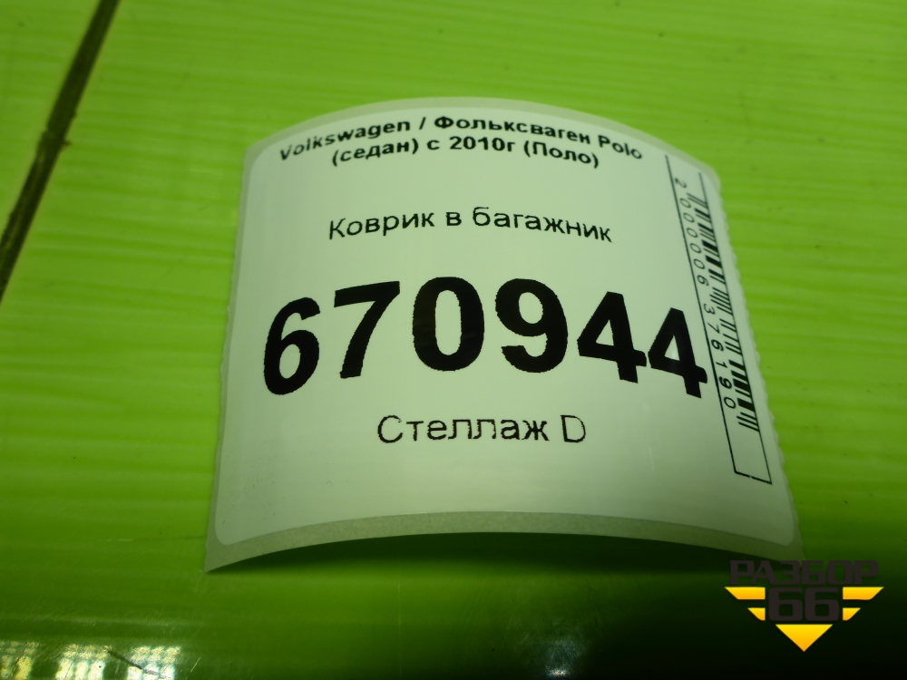 Коврик в багажник для Volkswagen Polo (седан) с 2010г (Поло) в Екатеринбурге