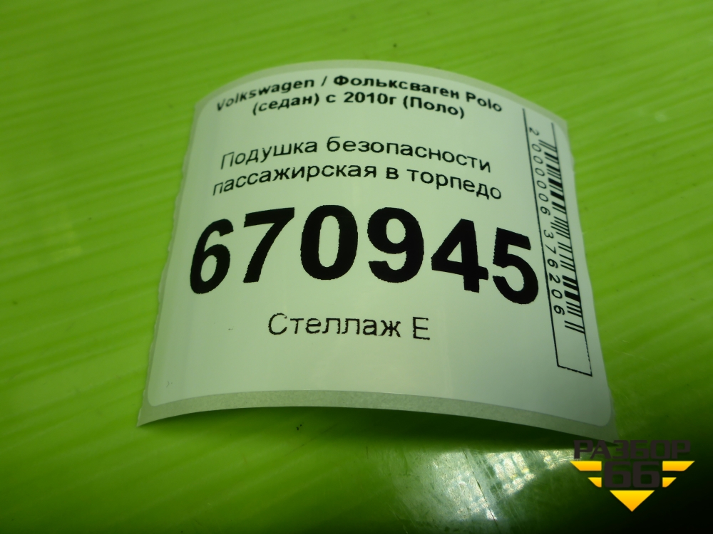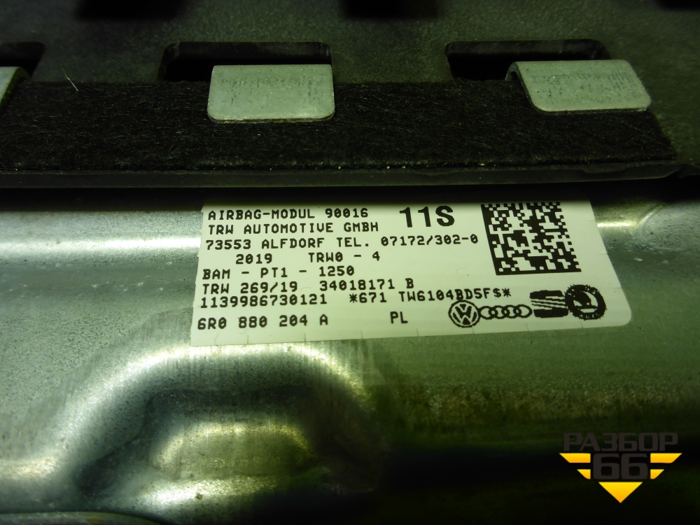 Подушка безопасности пассажирская в торпедо (6R0880204A) для Volkswagen Polo (седан) с 2010г (Поло) в Екатеринбурге