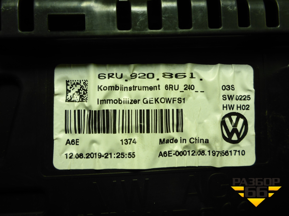 Щиток приборов МКПП (6RU920861) для Volkswagen Polo (седан) с 2010г (Поло) в Екатеринбурге