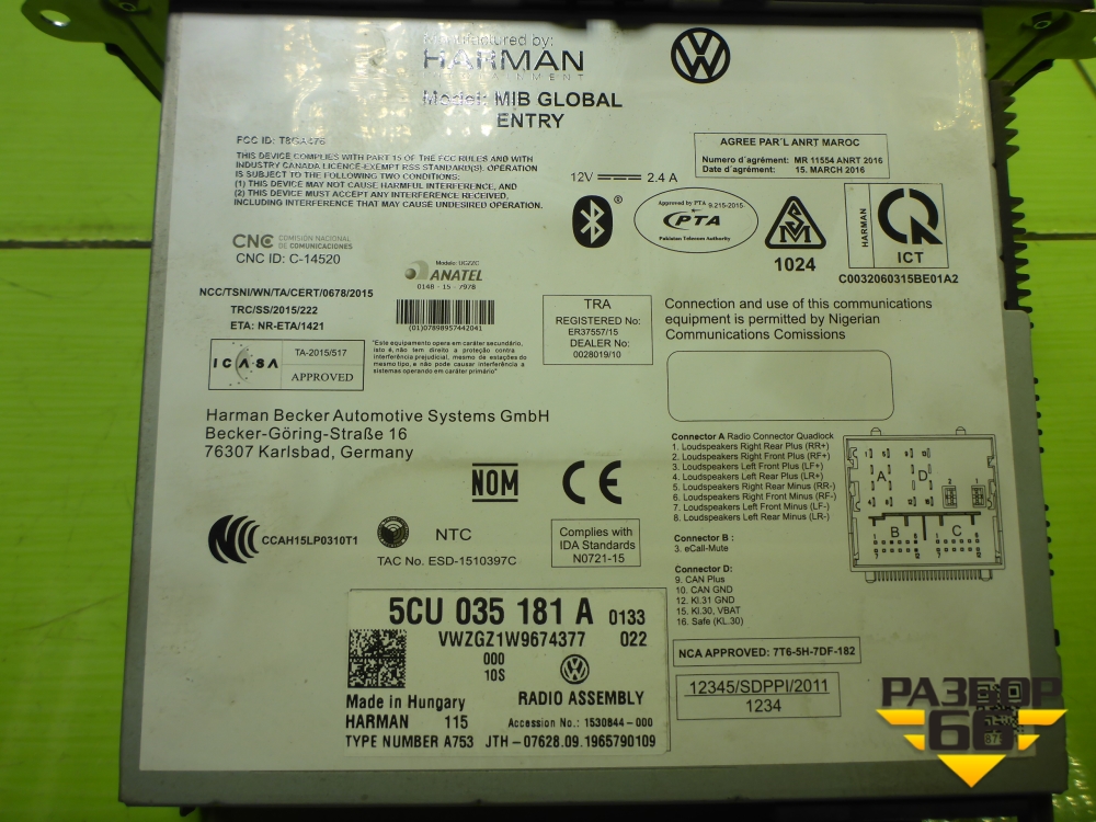 Магнитола (5CU035181A) для Volkswagen Polo (седан) с 2010г (Поло) в Екатеринбурге