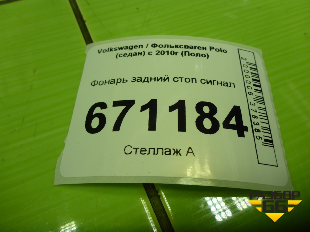 Фонарь задний стоп сигнал (6RU945087A) для Volkswagen Polo (седан) с 2010г (Поло) в Екатеринбурге