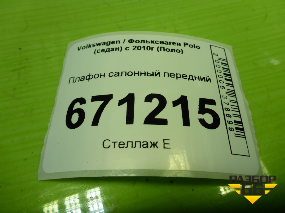 Плафон салонный передний (6Q1947105L) для Volkswagen Polo (седан) с 2010г (Поло) в Екатеринбурге
