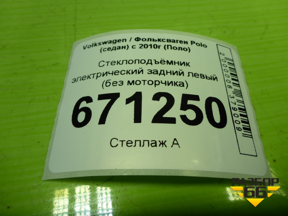 Стеклоподъёмник электрический задний левый (без моторчика) (6RU839461E) для Volkswagen Polo (седан) с 2010г (Поло) в Екатеринбурге