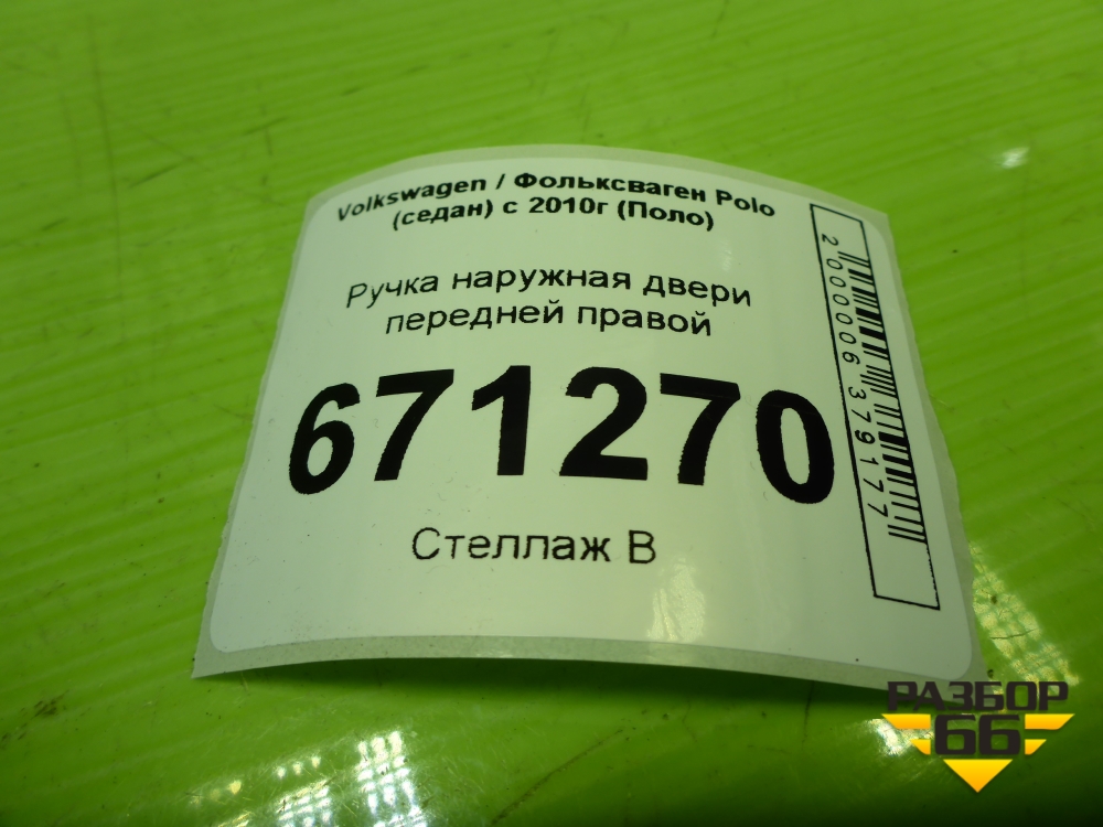 Ручка наружная двери передней правой (5N0839885H) для Volkswagen Polo (седан) с 2010г (Поло) в Екатеринбурге