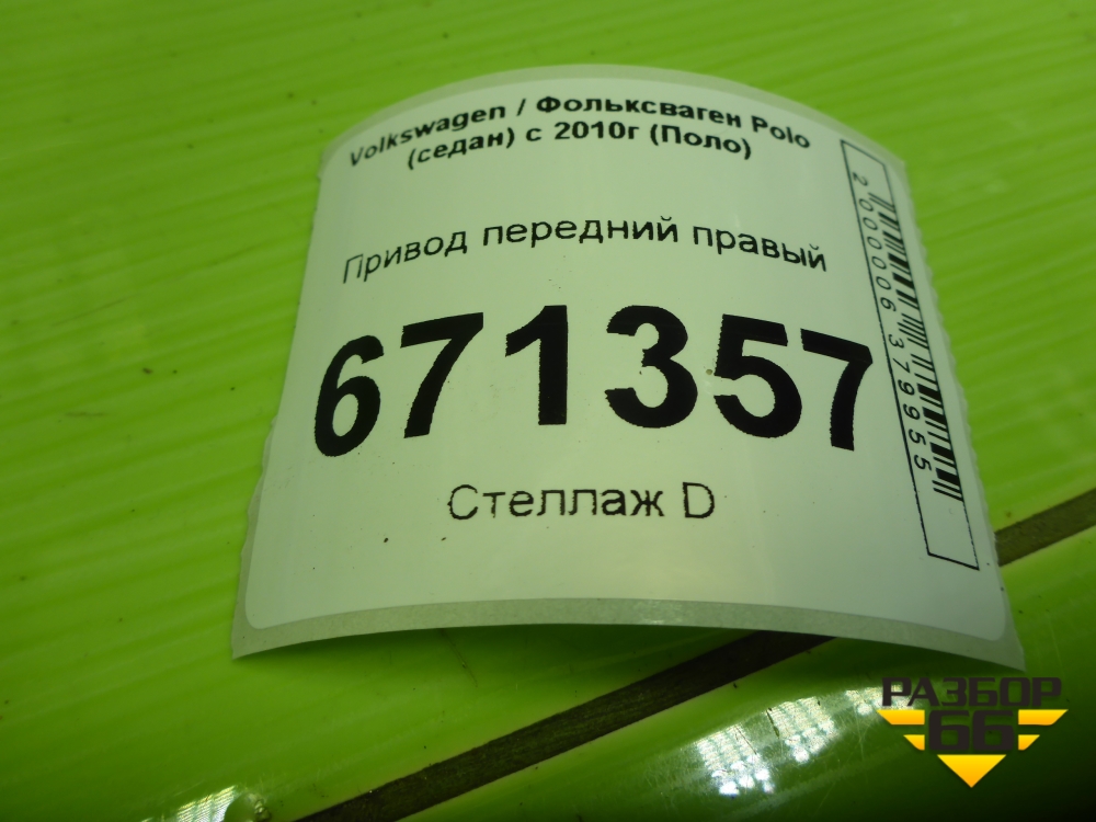 Привод передний правый (1.6л CWV) (6R0407762K) для Volkswagen Polo (седан) с 2010г (Поло) в Екатеринбурге