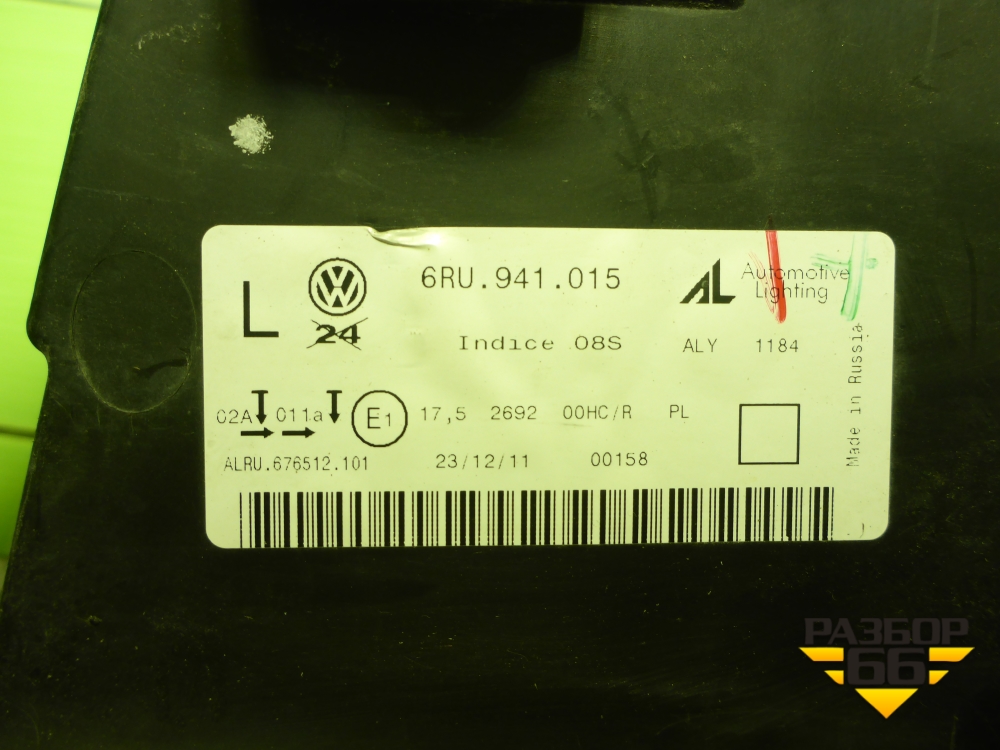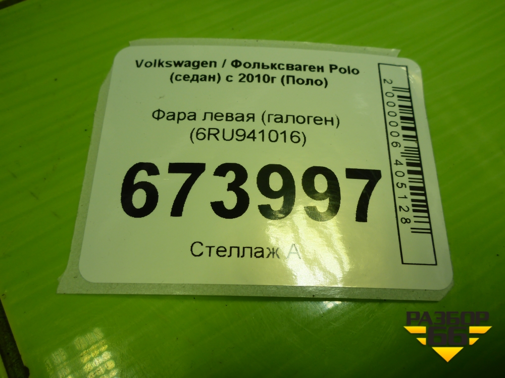 Фара левая (галоген) (6RU941016) для Volkswagen Polo (седан) с 2010г (Поло) в Екатеринбурге