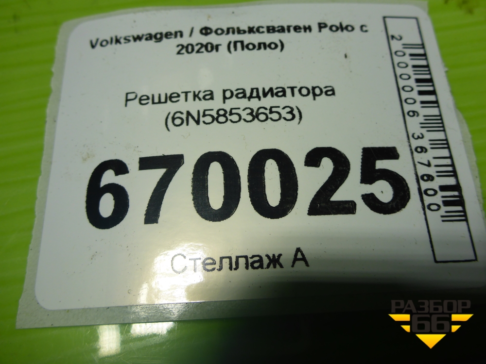 Решетка радиатора (6N5853653) для Volkswagen Polo с 2020г (Поло) в Екатеринбурге