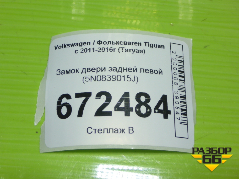 Замок двери задней левой (5N0839015J) для Volkswagen Tiguan с 2011-2016г (Тигуан) в Екатеринбурге