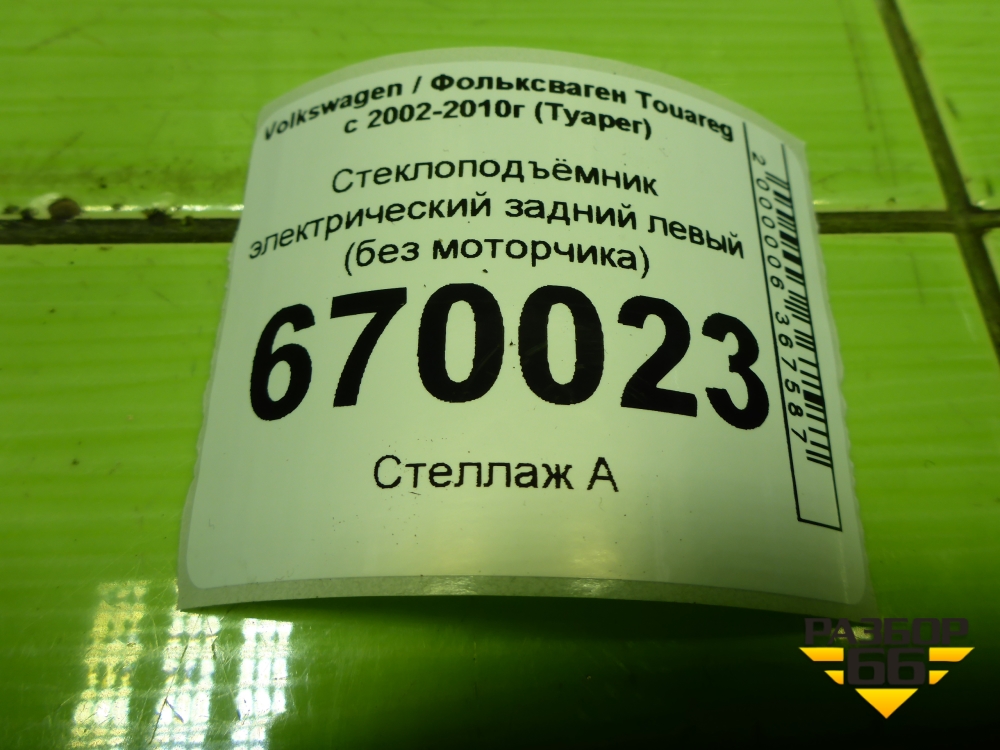 Стеклоподъёмник электрический задний левый (без моторчика) (7L0839353F) для Volkswagen Touareg c 2002-2010г (Туарег) в Екатеринбурге
