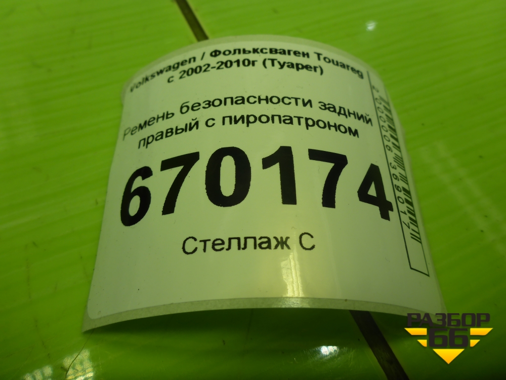 Ремень безопасности задний правый с пиропатроном (7L0857805B) для Volkswagen Touareg c 2002-2010г (Туарег) в Екатеринбурге